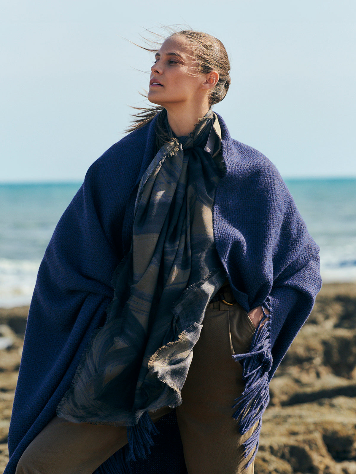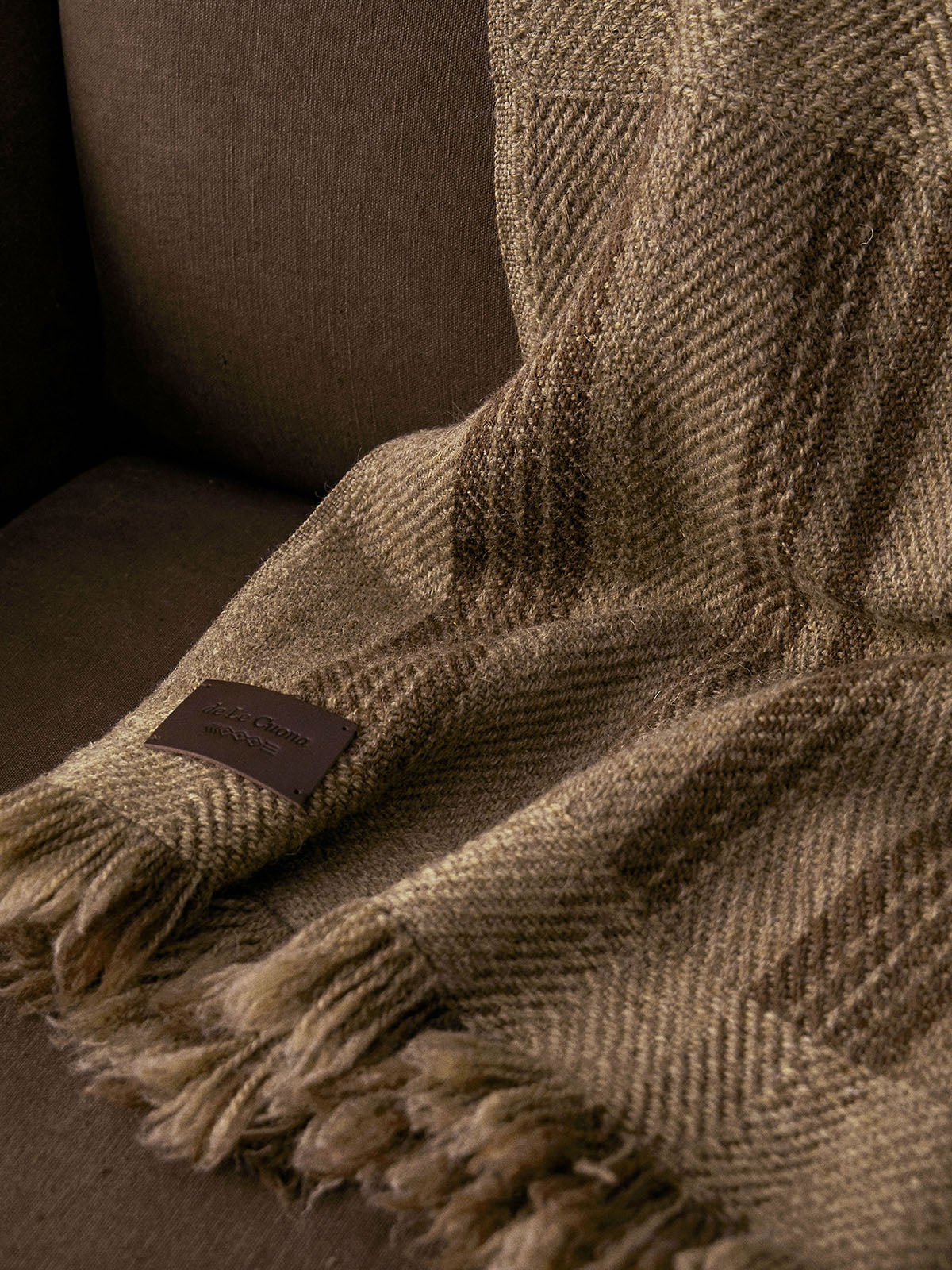 HANDWOVEN ALPACA BLANKET WITH FRINGE - KHAKI