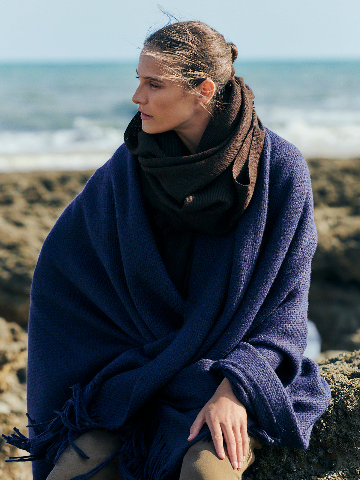 HANDWOVEN ALPACA BLANKET WITH FRINGE - CACAO