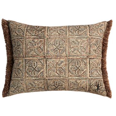 BATIK BLOCK PRINT CUSHION WITH FRINGING IN BRICK