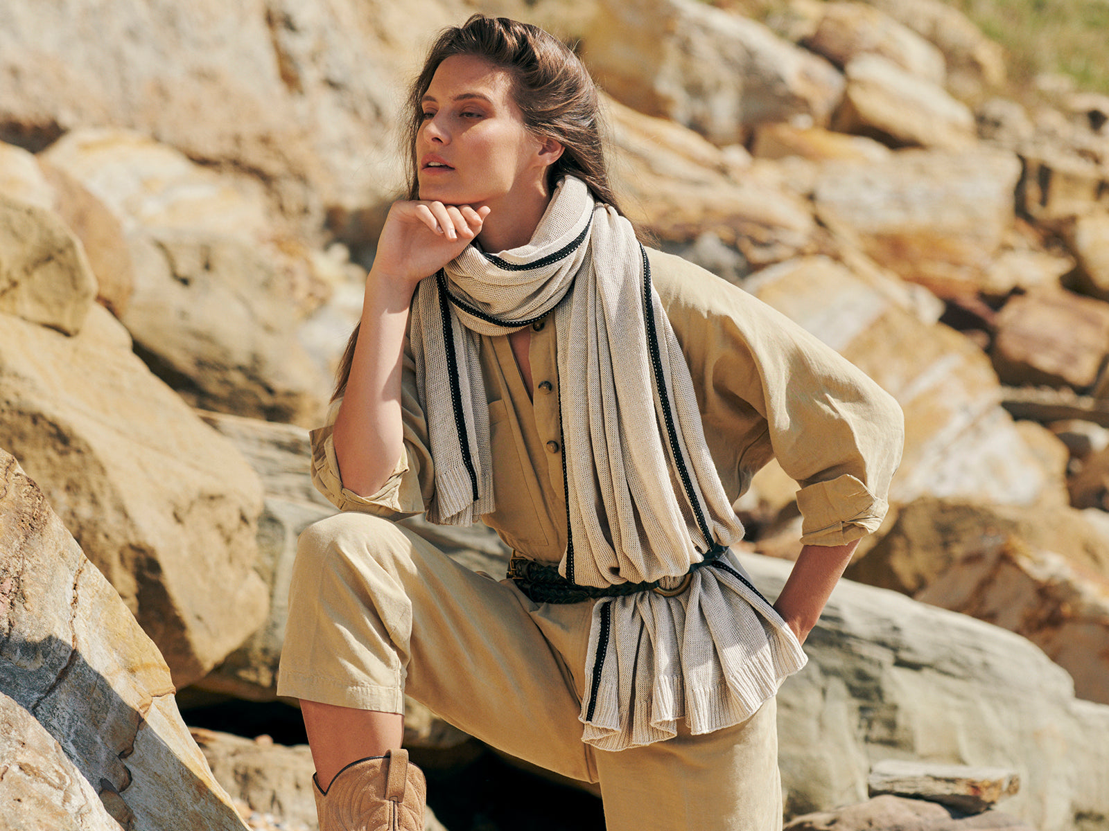 TRIBAL LINEN THROW WITH WOOL BINDING IN EARTH