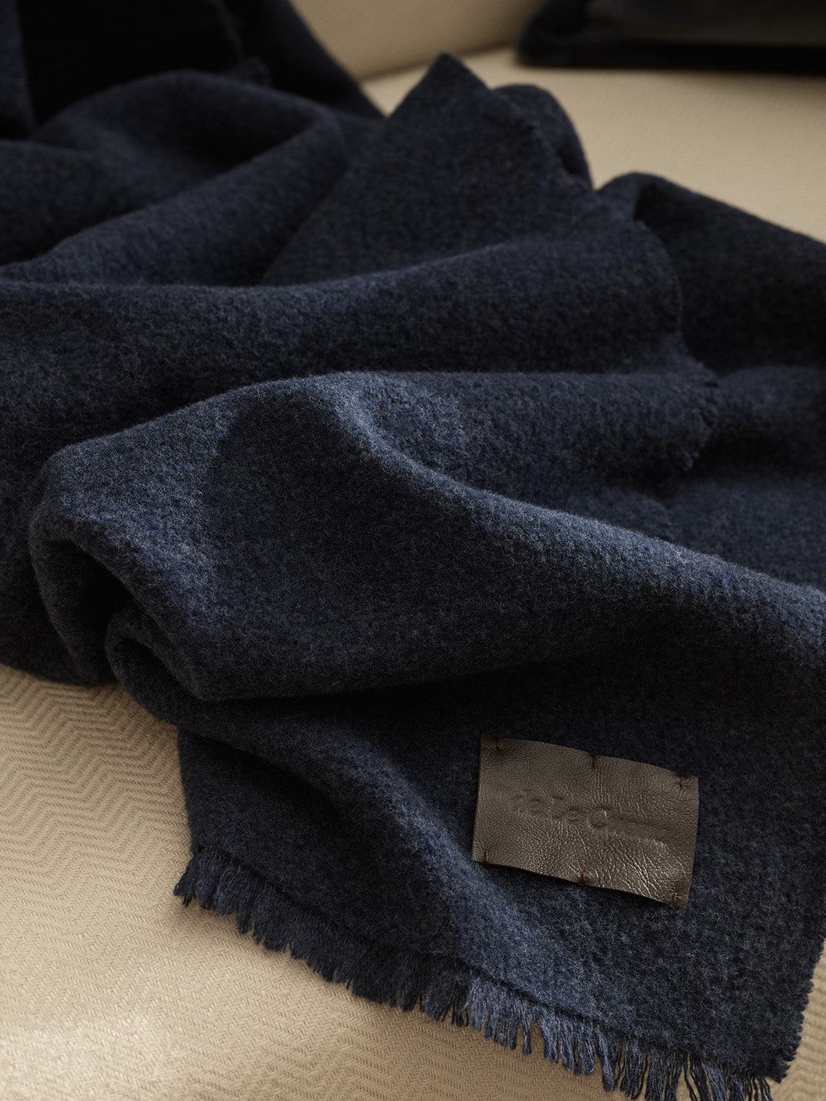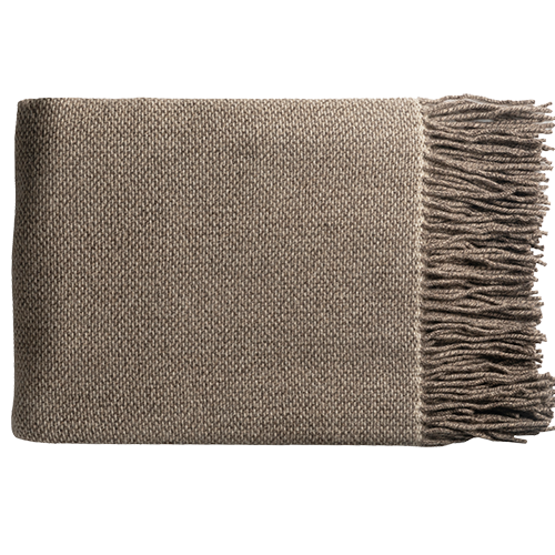 MOULINE CASHMERE BED THROW WITH FRIGE - CHOCOLATE