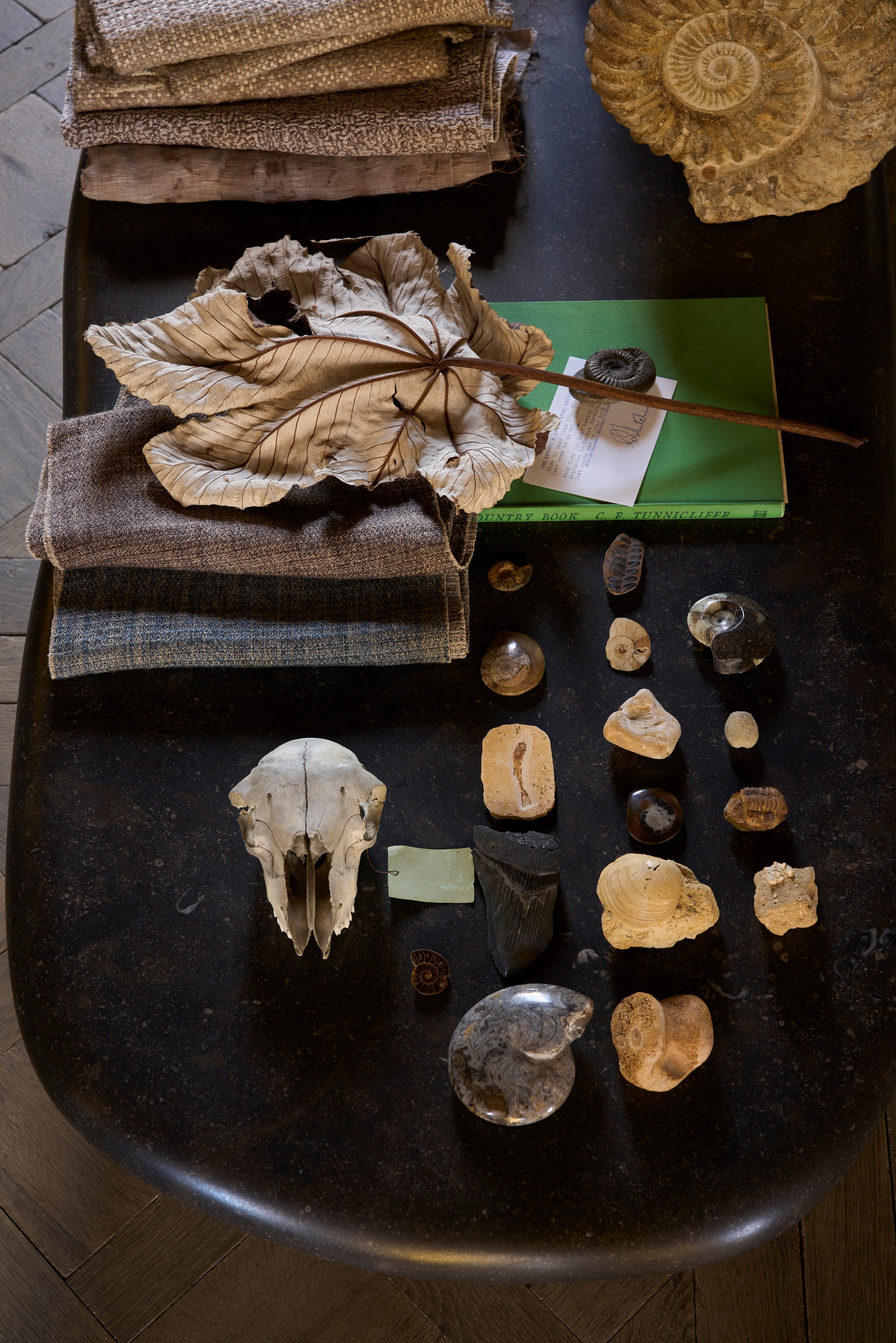 The collection draws its inspiration from the study of anthropology and archaeology. It reflects a deep appreciation for the eclecticism found in museum archives and the intricacies observed in nature. Each fabric in the collection tells a story of the artifacts and curiosities that inspire them.