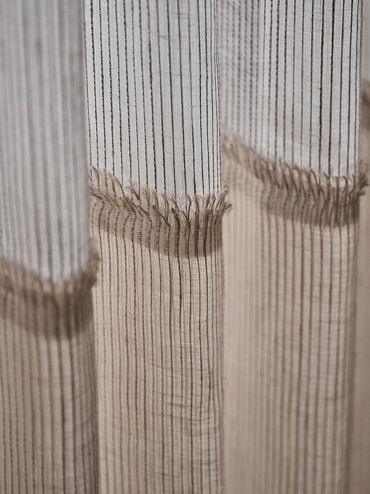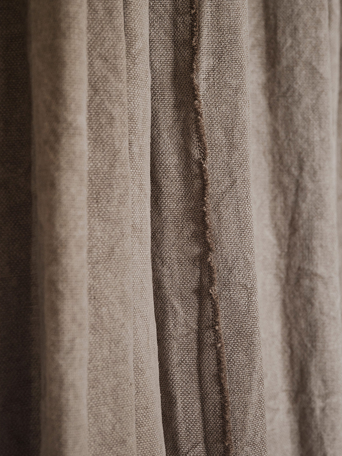 de Le Cuona: Bespoke Unlined Linen Curtains with Frayed Fringe Detail in Buffalo Dust