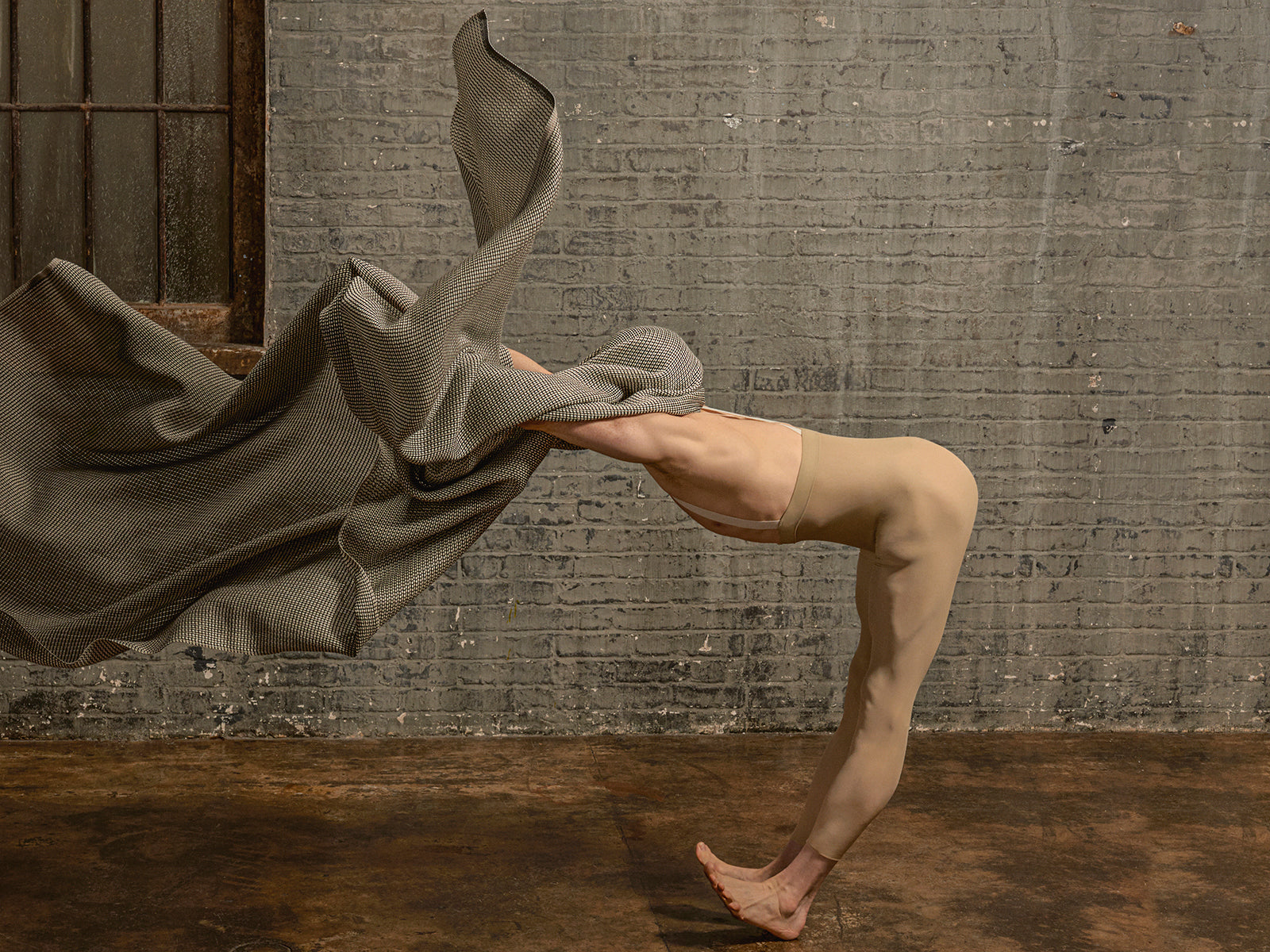 'The connection being human beings, our physical bodies and the textiles that surround us is a theme that I love to explore through my work. At a fundamental level, all textiles consist of fibres, much like the anatomical structure of the human body, and it is this parallel that I wanted to explore through photography and the art of dance. I am incredibly inspired by the physicality of ballet and how it pushes the body to the furthermost point of its physical capabilities. And then whilst speaking to Bernie about how she approaches her design process, I felt she too was pushing textiles to the very limits of where the fibres would allow her to go. The multi-layered, hand-worked nature of her creative process seemed to me just as much an artform as dance is. And so, I wanted to explore the point at which these two artforms collided, pushing both to the edge of their physical limitations and looking at what the fabric would do if incorporated into such a performance. I wanted to explore the edges of the scenario, where textile meets body, where does one begin and the other one end. I asked Edward to approach the textiles as he would a dance partner who he was working with for the very first time, tentatively with but a sense of discovery and fascination, as if encountering a brand new point of view and a new way in which to experience the world.'